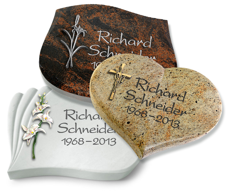 Sie suchen nach dem besonderen, schönen Grabbuch für einen einen geliebten Menschen: MEMORUM-Grabmale ist der größte Online – Anbieter von günstigen Sandstrahl gravierten modernen Urnengrabsteinen und Grabeinfassungen bzw. Grabsteine für Ihr Rasengrab aus Naturstein. Wir arbeiten mit Steinmetzen in ganz Deutschland zusammen – sogar viele Bestatter gehören zu unserem Kundenstamm, Bestatter die dann unsere Grabbücher beim Trauerfall Ihren Kunden – Beisetzung gemeinsam mit einer Grabeinfassung von uns als Komplettpaket anbieten können. MEMORUM ist ein Steinmetz Meisterbetrieb, mit 3 Bildhauermeistern, unser Qualitätsanspruch setzt Maßstäbe, besuchen Sie unser Vielfältiges Angebot an Grabbüchern für Ihr Rasengrab. Auch für Ihr großes Familiengrab wenn später eine Urne zusätzlich beigesetzt wurde, und Sie nicht möchten das der Grabstein für die zusätzliche Schrift wieder abgebaut werden muss, bietet sich ein Urnengrabstein von MEMORUM perfekt an. Der Grabstein wird einfach nur in die Erde etwas schräg gelegt, und stellt dann eine würdevolle Grabstätte für Ihren geliebten Menschen dar. Bei uns zählt Qualität. Der günstige Preis resultiert aus der standardisierten Beschriftungstechnik von ausgewählten Schriften, umgesetzt in dauerhafter Sandstrahltechnik oder hochwertigen Metallguss Inschriften. Mit unseren Produkten entscheiden Sie sich für stilsichere und dauerhafte Grabgestaltungen vom Meisterbetrieb, die rationell gefertigt und deshalb so überraschend günstig sind.